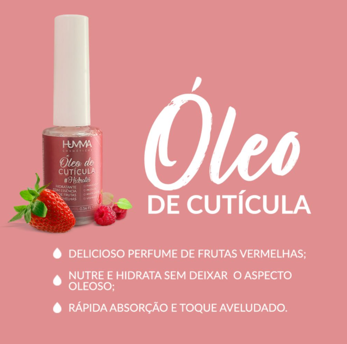 Apresentamos o Óleo de Cutícula Humma #Hidratei – a solução perfeita para manter suas cutículas hidratadas, nutridas e com uma aparência saudável. Com uma fórmula leve e de rápida absorção, este óleo proporciona cuidados essenciais sem deixar resíduos oleosos.